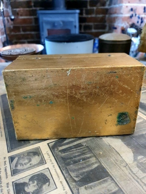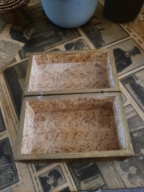 This is more of a novelty box that is made to look old rather than is old or antique, it looks lovely and can make someone happy buy using it for their little treasures or just to put you keys in a safe place.